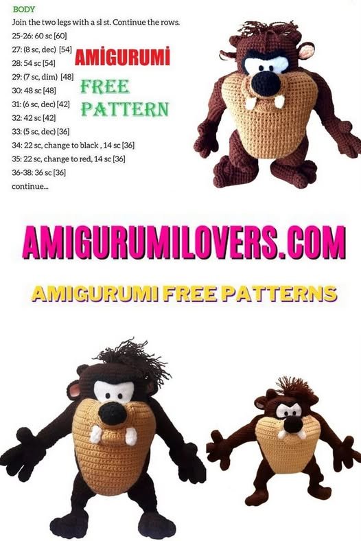 The Amigurumi Tasmanian Devil – Free Crochet Pattern – Crochet Pattern is a delightful and fun project for crochet lovers
