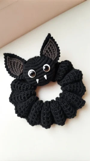Crochet Bat Scrunchie – Crochet Pattern is a delightful and spooky little project perfect for Halloween or any fun